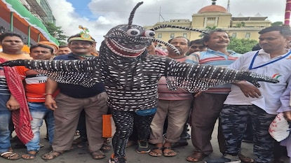 মশাবাহিত ডেঙ্গির প্রকোপ বাড়ছে বর্ষায়। ঘরে ঘরে মানুষ এই রোগের শিকার। তাই মানবিক দিক থেকেই সচেতনতার বার্তা নিয়ে ধর্মতলা চত্বরে ঘুরে বেড়াচ্ছেন তৃণাঙ্কুর। মশার হাত থেকে বাঁচতে নিজেকে মশা সাজিয়ে সাধারন মানুষকে দিচ্ছেন সচেতনতার পাঠ।