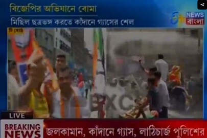 বিজেপির মিছিলে বোমাবাজি, চলল জলকামান-লাঠি