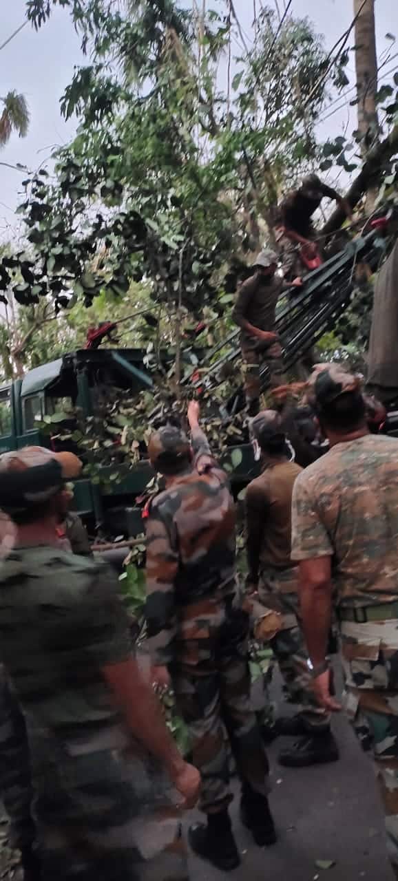 প্রতি টিমে রয়েছে ৩৫ জন করে আর্মি জওয়ান ৷ জানা গিয়েছে, টলিগঞ্জ, বালিগঞ্জ, রাজারহাট-নিউটাউন, ডায়মন্ড হারবার, বেহালায় উপড়ে যাওয়া গাছ সরিয়ে পরিস্থিতি ও পরিষেবা স্বাভাবিক করার কাজে হাত লাগিয়েছেন জওয়ানেরা ৷