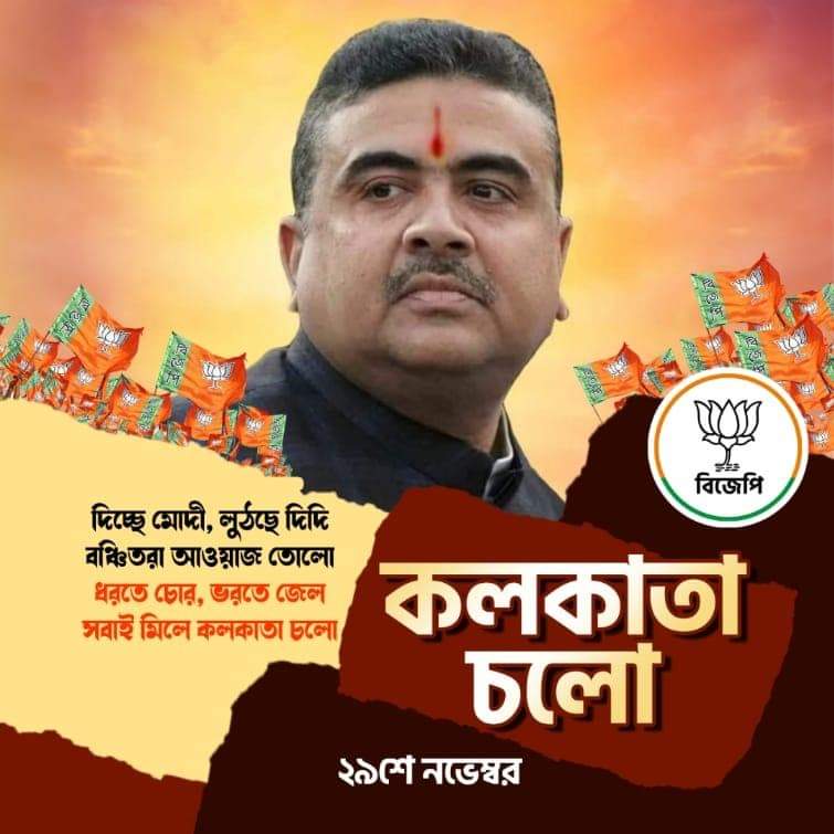 বঙ্গ বিজেপির রাজ্য সভাপতি সুকান্ত মজুমদার থেকে শুরু করে বিরোধী দলনেতা শুভেন্দু অধিকারী-সহ রাজ্য বিজেপির অন্যান্য নেতাকর্মী, সমর্থকেরা সকলেই সোশ্যাল মিডিয়ার নিজেদের প্রোফাইল পিকচার বদলে ফেলেছেন ইতিমধ্যেই৷ সেখানে লিখেছেন, সমাবেশের ‘বিশেষ’ স্লোগান৷ পাশাপাশি, তুলে ধরা হয়েছে ‘কলকাতা চলো’র পোস্টারও। বিরোধী দলনেতা শুভেন্দু অধিকারীর তরফে এদিন একটি ভিডিও বার্তাও দেওয়া হয় সমাজ মাধ্যমে৷ সেই বার্তায় সমাজের সমস্ত শ্রেণির ‘বঞ্চিত’ মানুষকে সমাবেশে যোগ দেওয়ার জন্য আহ্বান জানান তিনি।