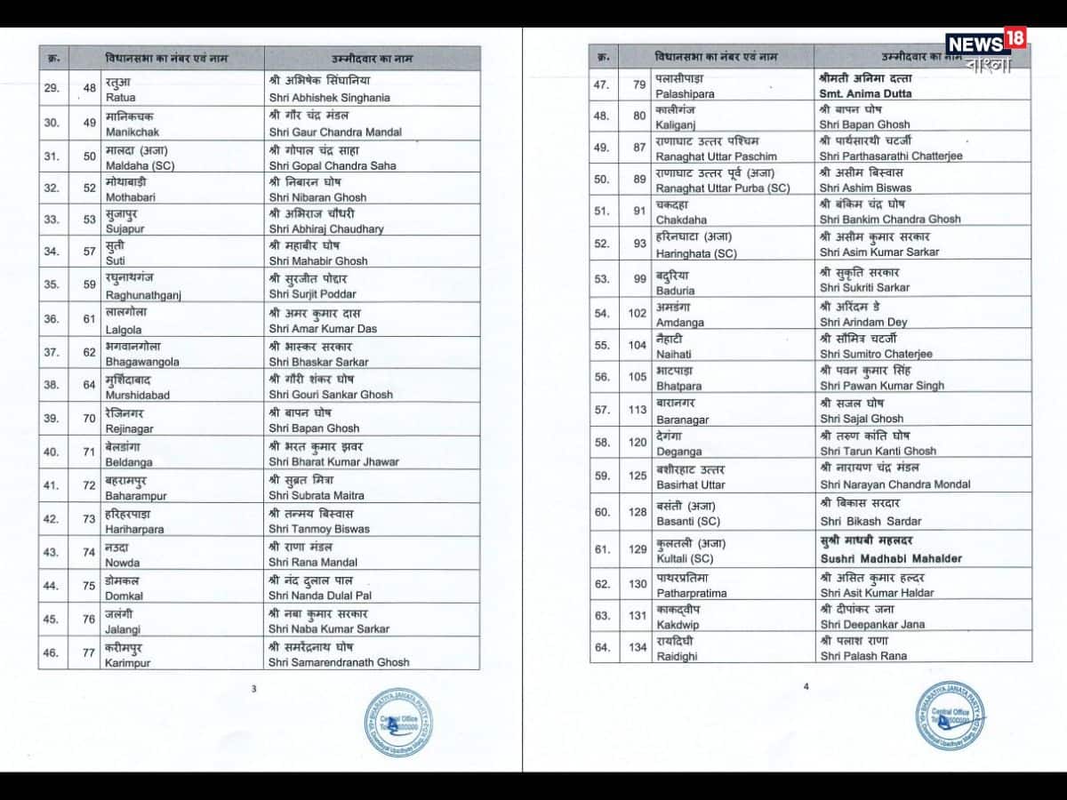 কলকাতাঃ ভোটের নির্ঘণ্ট ঘোষণার পরের দিনই পশ্চিমবঙ্গ বিধানসভা নির্বাচনের জন্য প্রথম দফার প্রার্থী তালিকা প্রকাশ করল বিজেপি। সোমবার নয়াদিল্লি থেকে রাজ্যের মোট ১৪৪টি আসনে প্রার্থীদের নাম ঘোষণা করা হয়েছে। রইল পূর্ণাঙ্গ তালিকা-