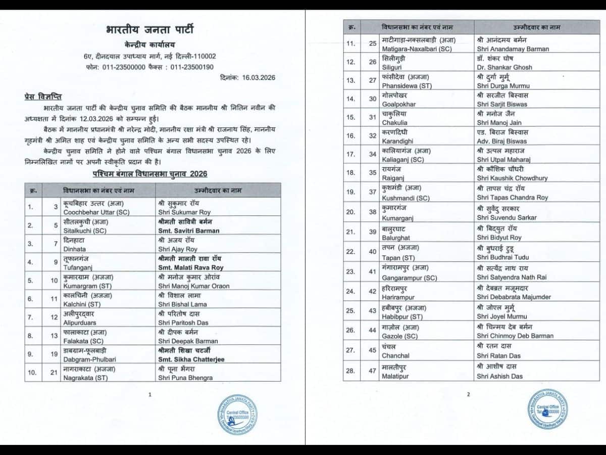 BJP Candidate List West Bengal Election 2026: বাংলার ১৪৪ আসনে প্রথম তালিকা প্রকাশ বিজেপির, দেখে নিন পূর্ণাঙ্গ প্রার্থী তালিকা