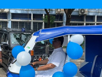 White and Blue Auto in Kolkata|| শহরে উত্তর-দক্ষিণে 'টেস্ট ড্রাইভ' নীল-সাদা অটোর, চালকের আসনে স্বয়ং ফিরহাদ