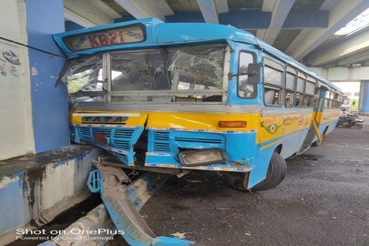 #কলকাতা: আবার বড় বাস দুর্ঘটনা কলকাতায়। এবার কেপি-২১ রুটের যাত্রীবোঝাই বেসরকারি বাস নিয়ন্ত্রণ হারাল মা উড়ালপুলের নীচে। পার্ক সার্কাস থেকে সাইন্স-সিটিগামী বাসটি প্রগতি ময়দান এলাকায় নিয়ন্ত্রণ হারিয়ে ধাক্কা মারে মা ফ্লাইওভারের নীচের থামে। ঘটনায় আহত হয়েছেন অন্তত ১১ জন যাত্রী। তাঁদের কলকাতা ন্যাশনাল মেডিকেল কলেজে নিয়ে যাওয়া হয়েছে। শেষ পাওয়া খবর পর্যন্ত বাসের চালক এখনও পলাতক।