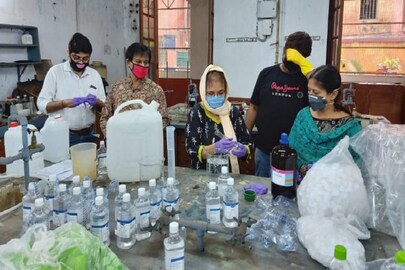 বিশ্ববিদ্যালয়ের রসায়ন বিভাগের উদ্যোগে বুধবার থেকেই স্যানিটাইজার তৈরির কাজ শুরু হল।