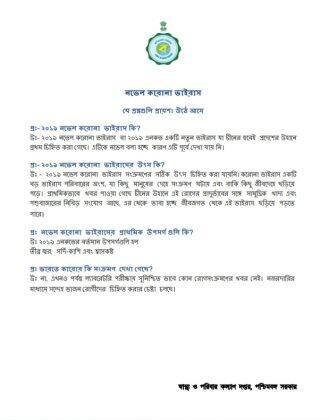 2019 নভেল করোনা ভাইরাস কি? এই প্রশ্নের উত্তরে স্বাস্থ্য ও পরিবার কল্যাণ দফতর তাদের প্রচার পত্রে বলছে, 2019 নভেল করোনা ভাইরাস বা 2019 এনকভ একটি নতুন ভাইরাস যা চীনের হুবেই প্রদেশের ইউহানে প্রথম চিহ্নিত করা গিয়েছে। এটি পূর্বে দেখা যায়নি বলেই এটিকে নভেল বলা হচ্ছে।