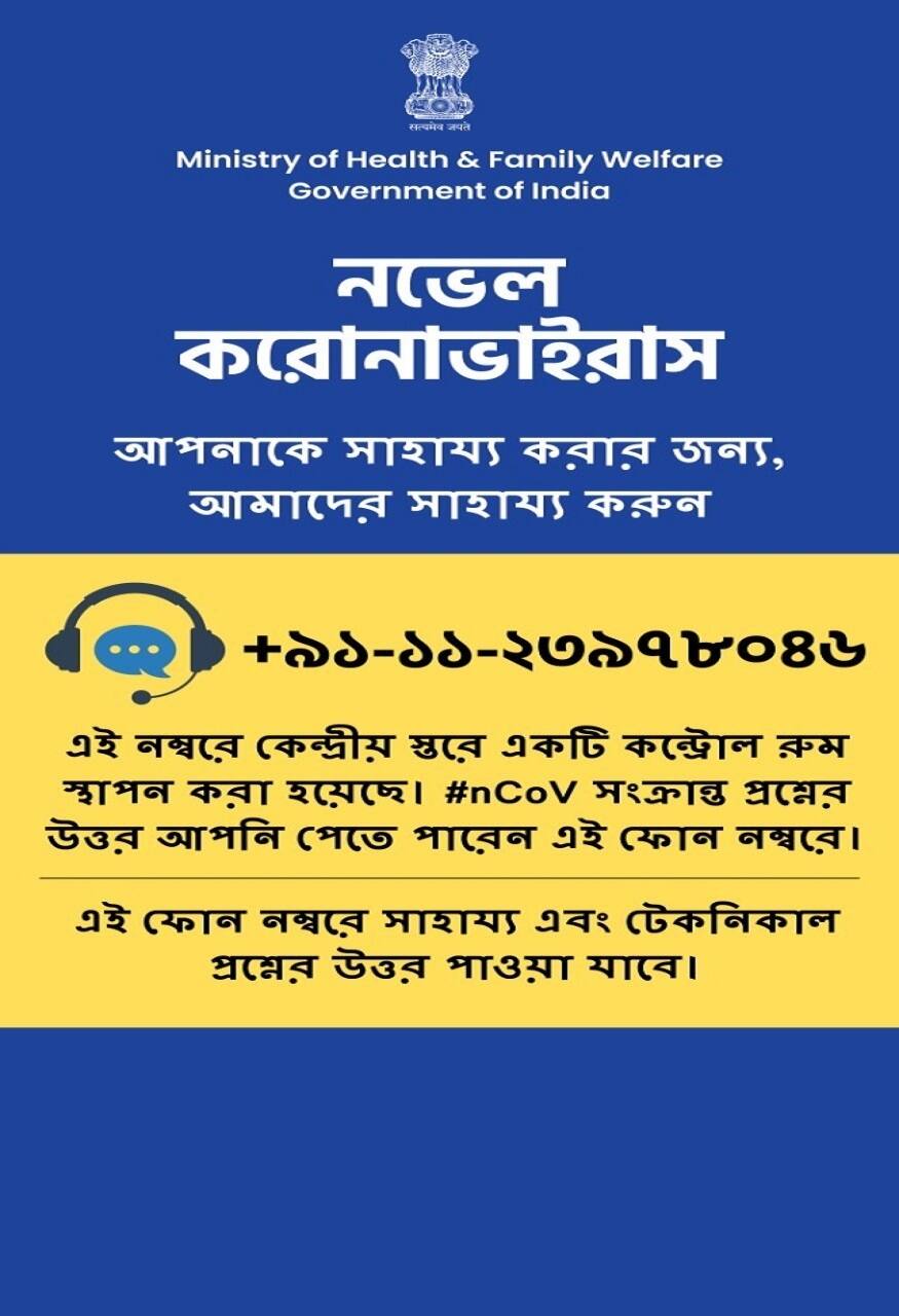 শিক্ষা দফতরের নির্দেশিকায় বলা হয়েছে, করোনা আক্রান্ত দেশ থেকে ভারতে এলে উপসর্গ না থাকলেও, ২৮ দিন হোম আইসোলেশন বাধ্যতামূলক। সর্দি, জ্বর, শ্বাসকষ্টের লক্ষণ দেখা দিলে, রাজ্য সরকারের ২৪ ঘণ্টার কল সেন্টারে যোগাযোগ করতে হবে। হেল্পলাইন নম্বরটি হল, +৯১১১২৩৯৭৮০৪৬৷