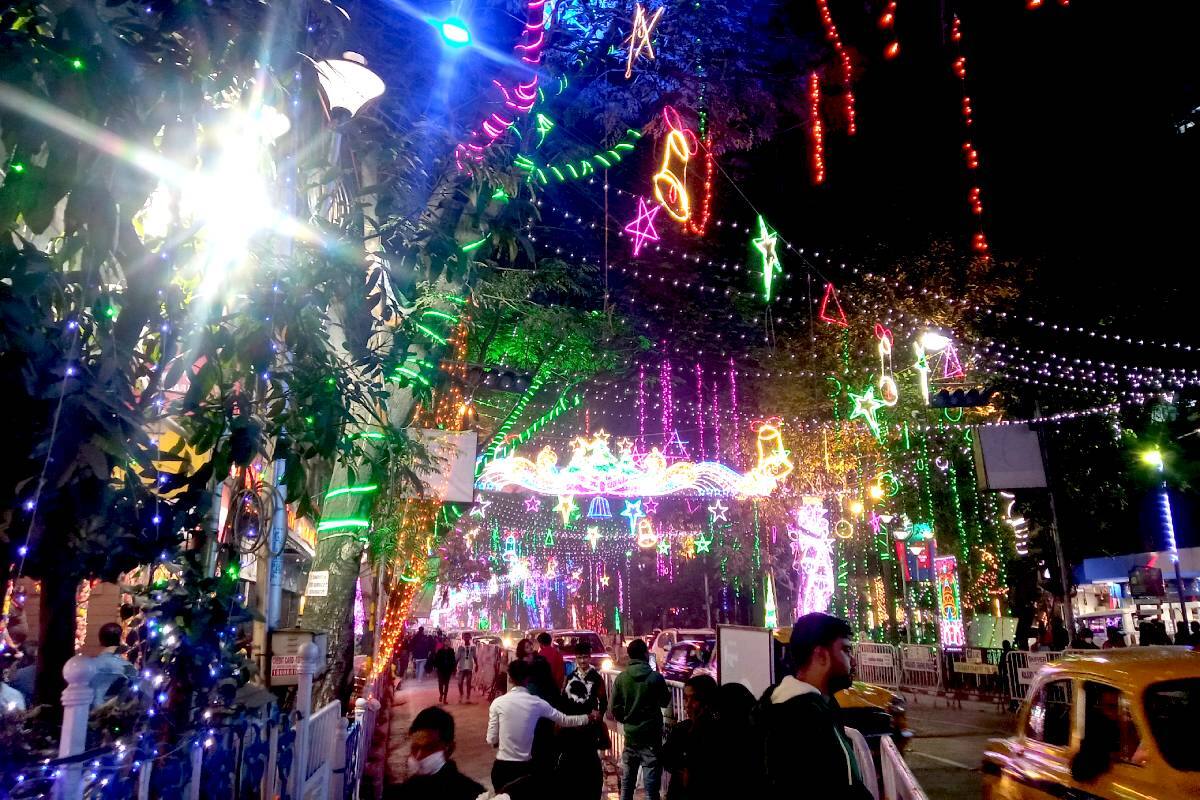 কারও মাথায় ঝলমলে লাল সিংয়ের হেয়ার ব্যান্ড, আবার কারও মাথায় ফুল দিয়ে লাইট লাগানো হেয়ার ব্যান্ড, কেউ আবার পরেছেন খরগোশের কান বা মিকি মাউসের হেয়ার ব্যান্ড। অ্যালেন পার্ক থেকে পার্কস্ট্রিট মোড় সর্বত্র আলোর রোশনাইয়ে সেজে উঠেছে৷ ক্রিসমাস ট্রি, জিঙ্গল বেলের সুরে ও নানা রঙের আলোর খেলায় মেতে উঠেছে পার্কস্ট্রিট। কেউ কেউ সেই মুহুর্ত সেলফিবন্দী করছেন। কেউ বা ক্যামেরায় পোজ দিচ্ছেন।