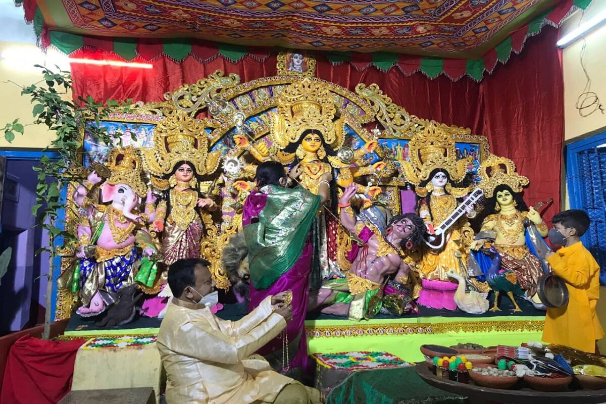 সারা বছর দাস বাড়িতে রাধাকৃষ্ণের পুজো করেন অন্য পূজারী। দুর্গাপুজোয় (Durga Puja 2021) অবশ্য পুরোহিতের ভূমিকায় থাকেন বাড়ির একমাত্র ছেলে প্রসেনজিৎ দাস। আগে পূজারী হিসেবে যোগ দিতেন তাঁর দিদি, পেশায় চিকিৎসক মৌমিতা দাসও। বিয়ের পরে অবশ্য মৌমিতা আর ওই ভূমিকায় থাকেন না। এ দিন বছর আটত্রিশের প্রসেনজিৎ বলেন, '১১ বছর আগে আমি আর দিদি মিলে ঠিক করেন দুর্গাপুজো করব। তবে মহাপুজো নয়। তাঁরা পুজো শুরু করবেন কৃষ্ণপক্ষের নবমী থেকে। আরও ঠিক করেন, পুজোর সব কাজ করব নিজেরাই। তারপর থেকেই চলছে।'