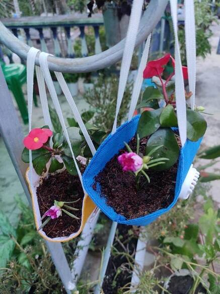 ফলে এই মূল্যবান মাস্কগুলি বাতিল হয়ে যায়। তাই যত্রতত্র এই মাস্ক ফেলে যাতে কেউ পরিবেশ দূষণ না করেন তার জন্য অভিনব পথ দেখালেন মদারাট পপুলার একাডেমির জীববিদ্যা বিভাগের শিক্ষক চিত্তরঞ্জন নস্কর ।তিনি জানান, বাতিল হয়ে যাওয়া এই মাস্কগুলি যেখানে সেখানে না ফেলে যদি রংবেরঙের ওই মাস্ক গুলিতে ফুল গাছ লাগানো যায় তা হলে একদিকে যেমন বাড়ির শোভা বৃদ্ধি পাবে, অপরদিকে পরিবেশও দূষণ মুক্ত হবে। তাই খুব সহজেই কিভাবে এই ভাল্বযুক্ত মাস্কগুলি দিয়ে ফুল গাছের বাহারি ঝুলন্ত পট বানানো যায় তা নিজের হাতে করে দেখালেন চিত্তরঞ্জন বাবু।
