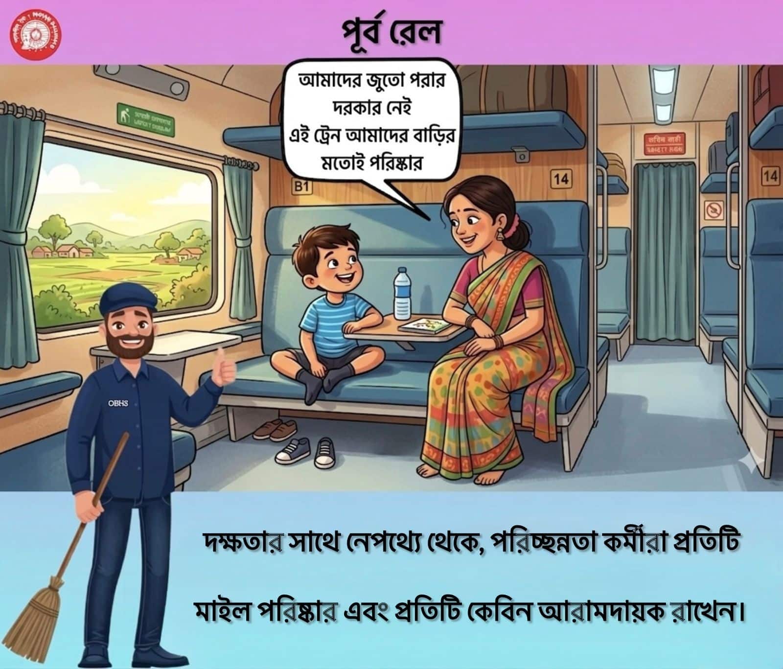লক্ষ লক্ষ যাত্রীর কাছে ‘অন বোর্ড হাউসকিপিং সার্ভিস’ (OBHS) এখন রেলভ্রমণের এক নিঃশব্দ হিরো হয়ে উঠেছে। বর্তমানে পূর্ব রেল ১২৩টি মেল/এক্সপ্রেস ট্রেন চালায়, যার মধ্যে ১০২টি যোগ্য ট্রেন এখন এই বিশেষ OBHS প্রকল্পের আওতাভুক্ত, যাতে আপনার যাত্রা যতটা সম্ভব পরিচ্ছন্ন এবং আরামদায়ক হয়।