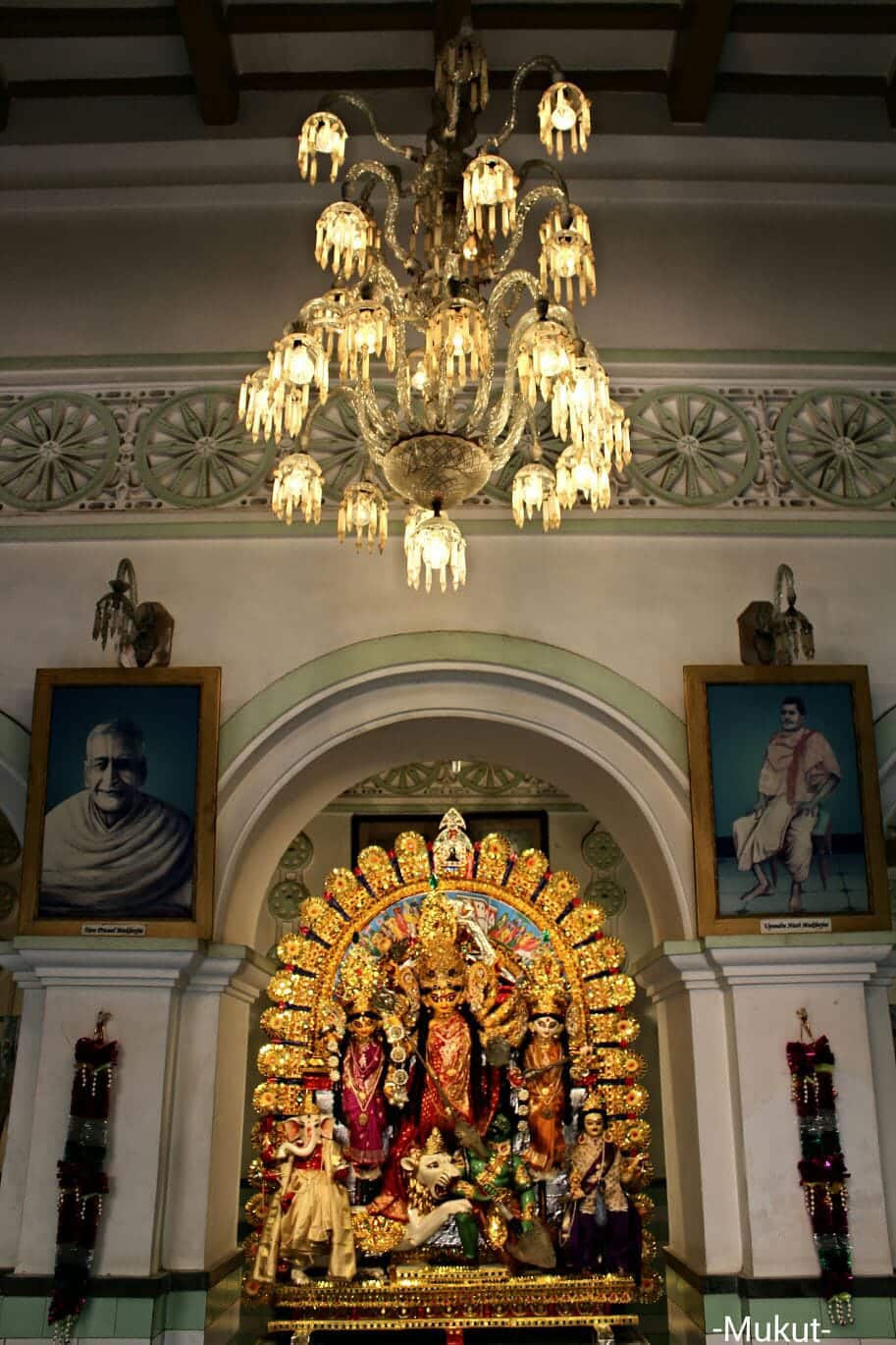 ১৮৩২ খ্রীস্টাব্দে এই বনেদি বাড়ির পুজো শুরু হয়েছিল প্রখ্যাত গুড় ব্যবসায়ী শ্রী হরচন্দ্র মুখোপাধ্যায়ের তত্ত্বাবধানে। তাঁর পুত্র গিরিশ মুখোপাধ্যায়ের ঐকান্তিক প্রচেষ্টায় নির্মিত হয় বর্তমানের ঠাকুরদালানটি। গিরিশবাবু একসময় সংস্কৃত কলেজে অধ্যাপনা করতেন। কিন্তু সেই চাকরি ছেড়ে তিনি বিদ্যাসাগরের পরামর্শে ওকালতি পড়ে মুন্সিফের চাকরি নেন, পরে সেটিও ছেড়ে দিয়ে তিনি স্বাধীনভাবে ওকালতি শুরু করেন। শোনা যায়, গিরিশবাবু প্রতিমাসের জলপানি বা স্টাইপেন্ডের ৭ আনা পয়সা সঞ্চয় করে সেই পয়সায় বর্তমান ঠাকুরদালানটি ক্রয় করেন। বিদ্যাসাগরের বহু আলোচিত সম্পত্তির উইলেও এই গিরিশবাবুর স্বাক্ষর ইতিহাসে স্থান করে নিয়েছে। বাঙালির চোখের মণি উত্তমকুমারের অভিনয় জীবন শুরু হয়েছিল এই ঠাকুরদালানেই। সেও এক ইতিহাস। পুজোর দিনগুলোতে সারারাত যাত্রাপালার আয়োজন হত আর অভিনয় থেকে শুরু করে যাবতীয় আয়োজনের দায়িত্বে থাকতেন উত্তমকুমার স্বয়ং।