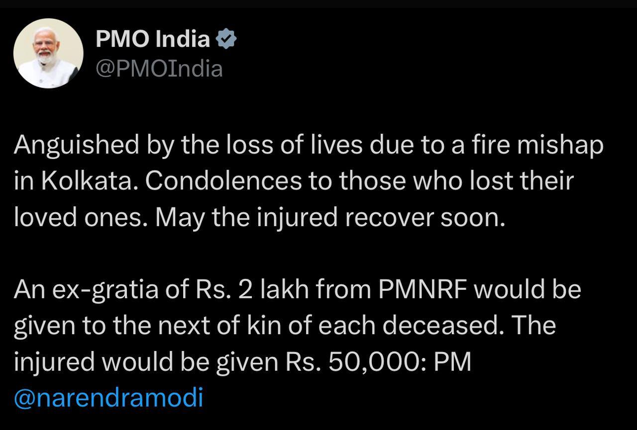 Kolkata Hotel Fire: কলকাতার অগ্নিকাণ্ডে উদ্বিগ্ন মমতা, মোদি! রাতেই ফোন মুখ্যমন্ত্রীর, মৃতদের পরিবারকে ক্ষতিপূরণ প্রধানমন্ত্রীর