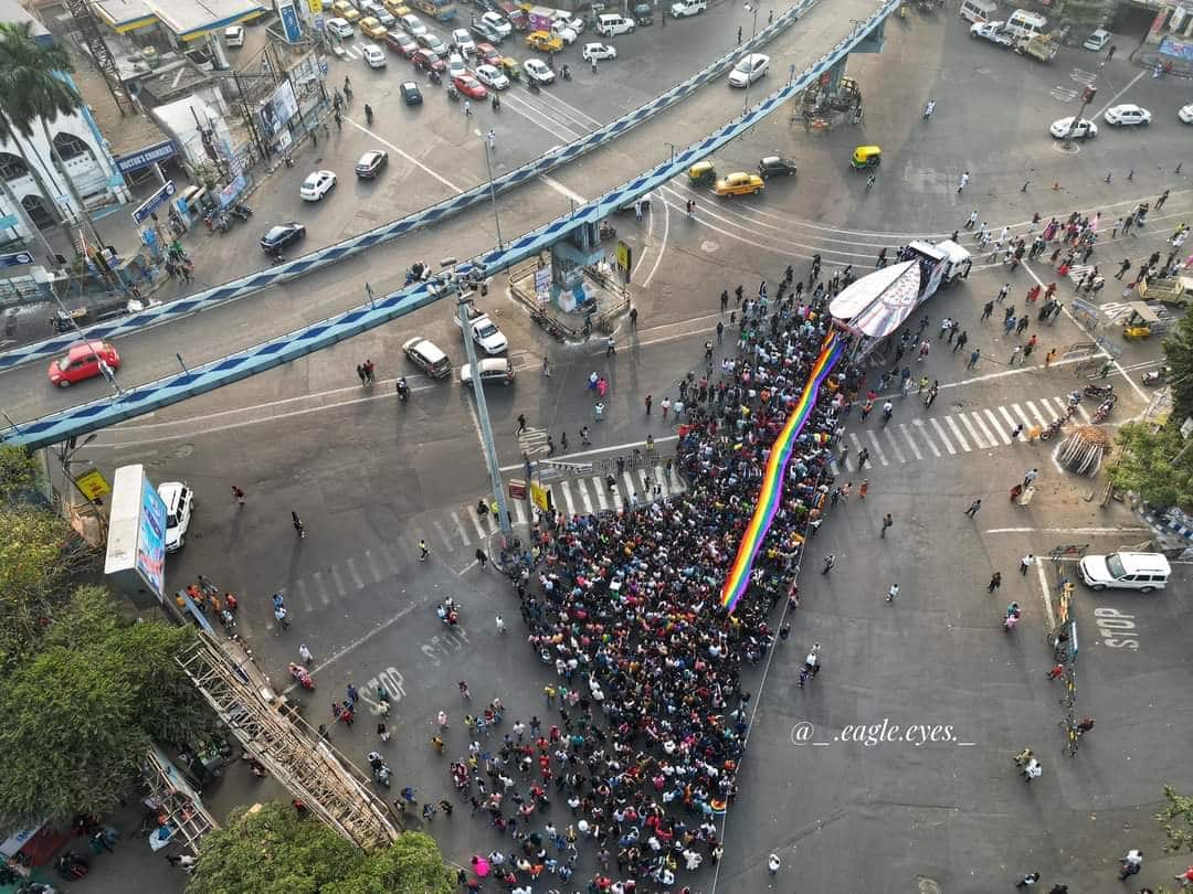 ১৯৯৯ সালে যাঁরা প্রথম শহরের বুকে সদর্পে পদচারণা করেছিলেন ভালবাসার অকুণ্ঠ দাবিতে, সেই সময়ে তাঁরা বেছে নিয়েছিলেন পার্ক সার্কাস থেকে পার্ক স্ট্রিটের গন্তব্য। এত বছর পরে, আবার সেই গর্বের পথ সেজে উঠেছে রামধনু ধ্বজায়, পতাকার সোল্লাসকে সঙ্গত দিয়েছে উত্তুরে হাওয়া।