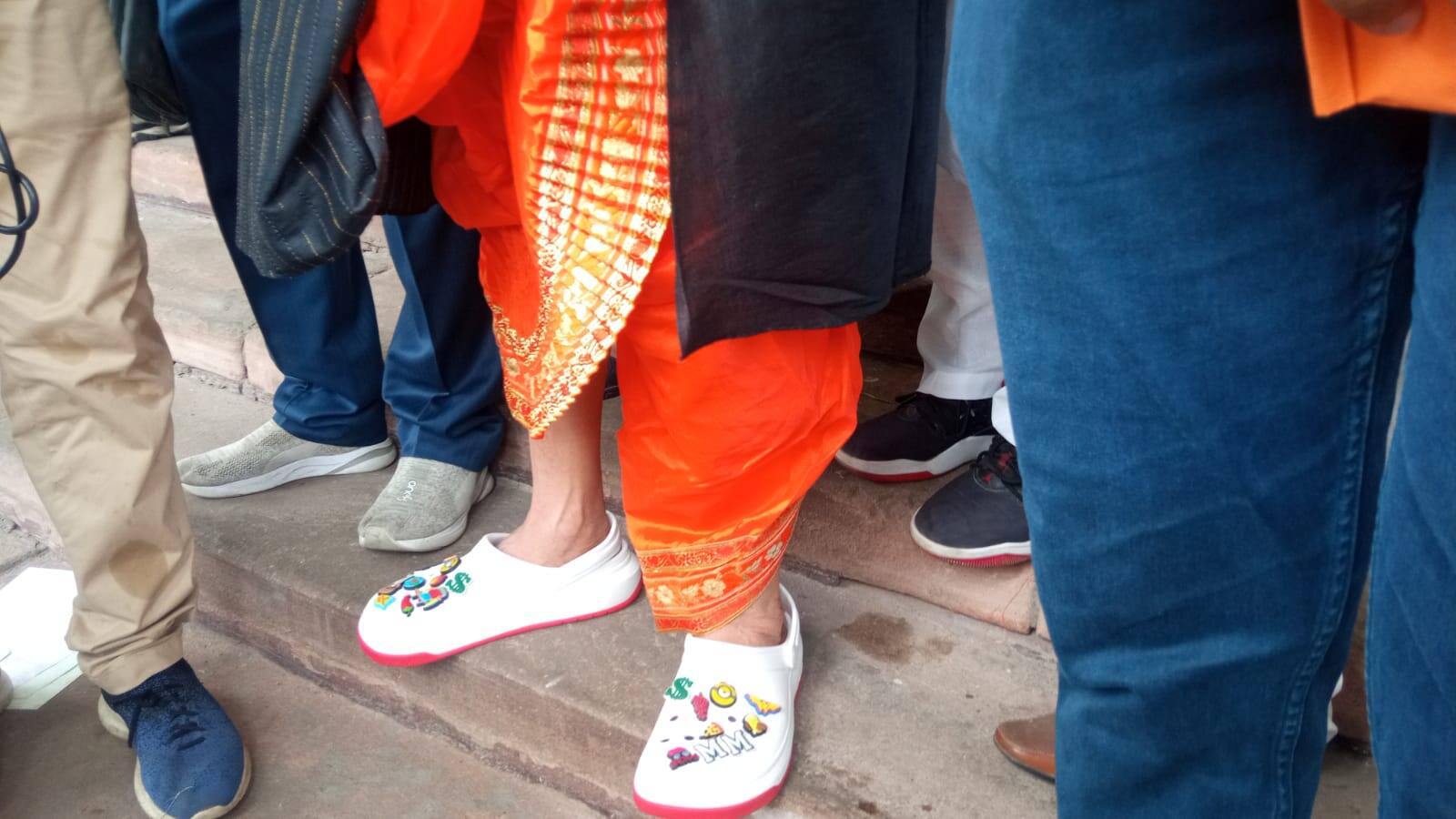 পরনে কালো সিল্কের পাঞ্জাবি আর সরু জরি পার কমলা ধুতি যেন আরও ঝলমলে করে তুলেছিল রঙিন মন-মেজাজের সদা হাস্যময় বিধায়ক মদন মিত্রকে। তবে ধুতি ও পাঞ্জাবি ছাড়িয়ে সকলের নজর আরও বেশি করে যা কাড়ছিল তা হল প্রবীণ বিধায়কের পায়ের ছেলেমানুষি স্টাইলের জুতো জোড়া। সাধারণত শিশুদের পায়ে যে ধরণের জুতো দেখা যায় তেমনই নানা কার্টুন চরিত্রের ছবি চিত্রায়িত একটি মজাদার জুতো পায়ে পরেছিলেন মদন মিত্র। আর তাতেই সবার চোখ ছিল কামারহাটির বিধায়কের পায়ে।