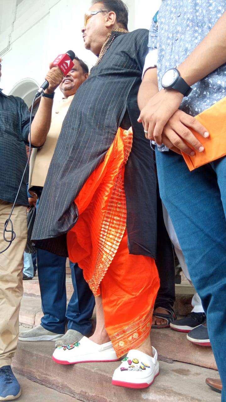 কালো পাঞ্জাবি-কমলা ধুতি... নাতির পছন্দ করা 'বিশেষ' জুতো পরেই বিধানসভায় চিররঙিন মদন