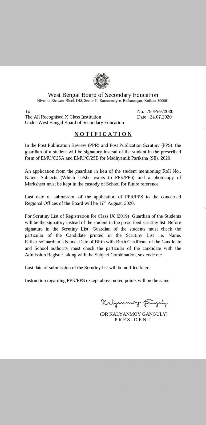 নির্দেশিকা জারি করে পর্ষদের তরফে জানানো হয়েছে ১৭ অগাস্ট পর্যন্ত পর্ষদের রিজিওনাল অফিস গুলি মারফত রিভিউ অফ স্ক্রুটিনি জন্য আবেদনপত্র জমা দেওয়া যাবে