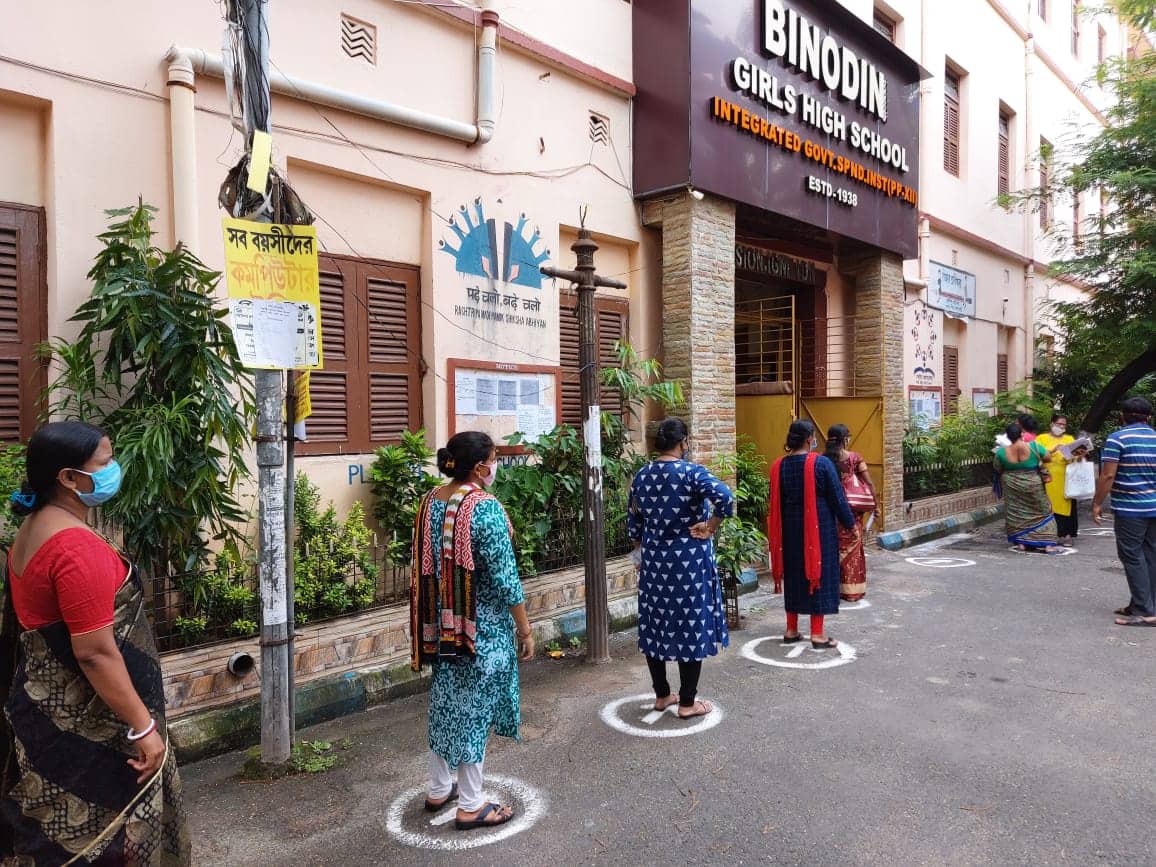 এদিন দক্ষিণ কলকাতার বিনোদিনী গার্লস হাই স্কুল থেকে শুরু করে বালিগঞ্জ গভমেন্ট প্রত্যেকটি স্কুলে দেখা যায় অভিভাবকরা সামাজিক দূরত্ব বিধি মেনেই দাঁড়িয়ে রয়েছেন। আবার কোনও কোনও স্কুলে অবশ্য মার্কশিট ও সার্টিফিকেট নেওয়ার জন্য যাতে অভিভাবকদের হুড়োহুড়ি না পড়ে যায় তাই নির্দিষ্ট দূরত্ব অন্তর অন্তর দিয়ে গোল করে নির্দিষ্ট জায়গা করা হয়েছিল অভিভাবকদের দাঁড়ানোর জন্য। অভিভাবকরা দূরত্ব বজায় রেখে চক দিয়ে গোল করা অংশে লাইনে দাঁড়িয়ে তবেই মাধ্যমিকের মার্কশিট ও সার্টিফিকেট সংগ্রহ করেছেন।