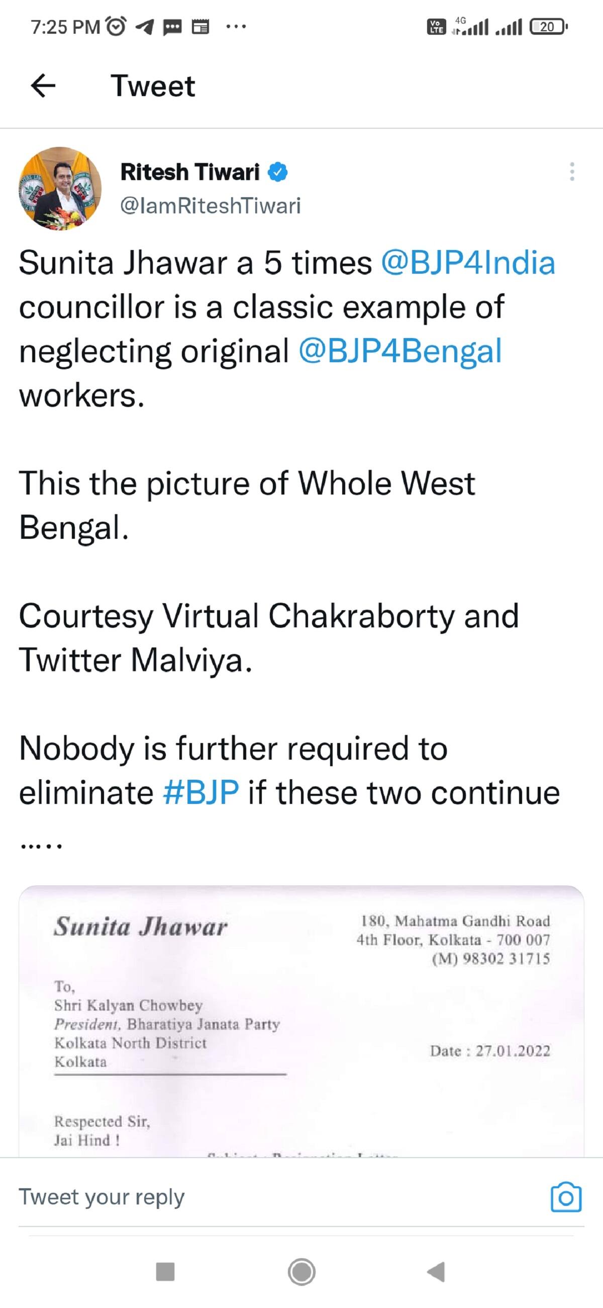 আলিপুরদুয়ারের এক সংখ্যালঘু নেতা বিজেপিকে নিশানা করে বলেছে, জেলায় সংখ্যালঘু মোর্চার জন্য একজন মুসলিম মুখকেও পেল না জেলা বিজেপি! এর থেকেই স্পষ্ট বিজেপিতে সংখ্যালঘু মুসলিমরা কতটা উপেক্ষিত। ঝাড়গ্রামে কমিটি নিয়ে বিবাদের জেরে পার্টি অফিসে তালা লাগিয়ে দেয় বিক্ষুব্ধরা। আর, উত্তর কলকাতা জেলা কমিটির সহ সভাপতি পদ থেকে ইস্তফা দিয়ে জেলা সভাপতির কাছে চিঠি পাঠিয়ে দিলেন দলের ৫ বারের কাউন্সিলর সুনীতা ঝাওয়ার। সেটাই হাতিয়ার করে বিক্ষুব্ধ রীতেশ তেওয়ারি ট্যুইটে লিখেছেন, এর থেকে স্পষ্ট বর্তমান বিজেপিতে আদি বিজেপির কোন জায়গা নেই। রাজনৈতিক পর্যবেক্ষকদের মতে, ১৯-র পর থেকে রাজ্য বিজেপিতে যে আদি আর নব্য বিজেপির লড়াই শুরু হয়েছে, ২১-র বিপর্যয়ের পর তা আবার মাথাচাড়া দিয়েছে। এই পরিস্থিতিতে কেন্দ্রীয় নেতৃত্ব উত্তরপ্রদেশ-সহ ৫ রাজ্যের ভোট নিয়ে ব্যস্ত থাকায় বাংলার দিকে নজর দেওয়ার সুযোগই পাচ্ছে না। ফলে, প্রতিদিনই রাজ্যে বিজেপির শক্তিক্ষয় হচ্ছে। এই পরিস্থিতি চলতে থাকলে, রাজ্যে বিজেপির ভাঙন বড় আকার ধারন করতে পারে।