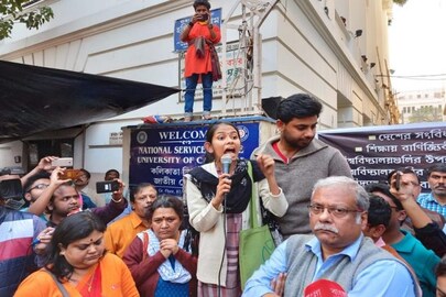 বিশ্ববিদ্যালয়ের বাইরে দাঁড়িয়েই বিজেপি ও আরএসএসের বিরুদ্ধে সুর চড়ালেন জেএনইউয়ের ছাত্র সংসদের সভাপতি ঐশী ঘোষ৷