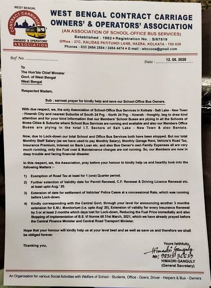 কলকাতা শহর ও শহরতলিতে চলাচল করে প্রায় ৩০০০ স্কুল বাস। এই সমস্ত স্কুল বাস চলাচল করে কোথাও সরাসরি অভিভাবকদের সাথে চুক্তির ভিত্তিতে। কোথাও আবার বাস চলে স্কুলের সাথে চুক্তিতে। লকডাউন ঘোষণার পর থেকে বন্ধ রাজ্যের সমস্ত স্কুল। ফলে স্কুল বাসে করে যাতায়াতের দরকার নেই। এর জেরে গত দু'মাসের অভিভাবক বা স্কুলের তরফ থেকে প্রাপ্ত টাকা এখনও হাতে পায়নি স্কুল বাস সংগঠনের সদস্যরা। যার জেরে তাদের ভীষণ অসুবিধার মধ্যে পড়তে হয়েছে৷ রাজ্যের কন্ট্র্যাক্ট ক্যারেজ ওনারস অ্যান্ড অপারেটর অ্যাসোসিয়েশন তরফ থেকে জানানো হয়েছে, মাসে তাদের জ্বালানি বাবদ খরচ হয় ২৯০০০ টাকা। চালকের বেতন ১২০০০ টাকা। হেল্পারের বেতন ৭৫০০ টাকা। সহকারীর বেতন ৭০০০ টাকা। গ্যারাজের জন্য মাসে ২৫০০ টাকা। এছাড়া ট্যাক্স, বিমা, ব্যাংক লোন সহ একাধিক খরচ আছে। এই বিপুল পরিমাণ টাকা আসে অভিভাবক ও স্কুলের তরফ থেকে।