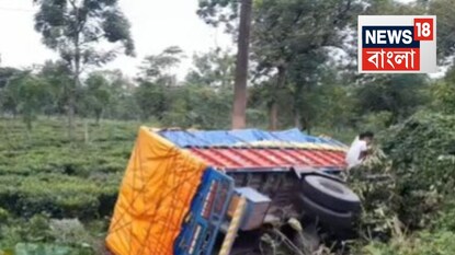 গয়া যাওয়ার পথে দুর্ঘটনা, নিয়ন্ত্রণ হারিয়ে নয়ানজুলিতে উল্টে গেল বাদামবোঝাই লরি! আহত ১