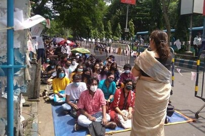 যে ক্লাস হবার কথা চার দেওয়ালের মাঝখানে ক্লাস রুমে, তা বিশ্ববিদ্যালয়ের বাইরে কেন? এসএফআই সমর্থিত বেশ কিছু বিশ্ববিদ্যালয়ের পড়ুয়ার এটাই অভিনব প্রতিবাদ। তাদের দাবী, অনেক হল অনলাইন, এবার হোক অফলাইন। আদতে করোনাকালে লকডাউন কাটিয়ে ছাড়ের আওতায় আনা হয়েছে অনেক কিছু, তাদের অভিযোগ শুধুমাত্র ক্লাস রুমের তালা বন্ধ প্রায় দুই বছর ধরে। তারই প্রতিবাদ জানাতে যাদবপুর বিশ্ববিদ্যালয়ের বাইরে বেঞ্চ পেতে বিশ্ববিদ্যালয়ের অধ্যাপিকা নন্দিনী মুখোপাধ্যায়ের সঙ্গে ক্লাস করলেন ইঞ্জিনিয়ারিং, সাইন্স ও কলা বিভাগের পড়ুয়ারা।