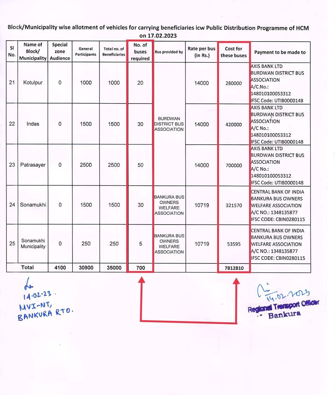 কলকাতা: চলতি মাসের ১৭ তারিখ মুখ্যমন্ত্রীর বাঁকুড়ার সভায় ৭০০ বাস করে পড়ুয়া এবং অন্যান্যদের নিয়ে আসার খরচ বাবদ ৭৮ লক্ষ টাকা মেটানো হয়েছে শুধুমাত্র বাস ভাড়া বাবদ । ট্যুইটে বিস্ফোরক দাবি করলেন বিরোধী দলনেতা শুভেন্দু অধিকারী। প্রশাসনিক সভার নামে মুখ্যমন্ত্রী মমতা বন্দ্যোপাধ্যায়ের রাজনৈতিক বক্তব্য জোর করে শোনানোর জন্য কেন রাজকোষ থেকে বিপুল পরিমাণ টাকা খরচ করা হল? এই প্রশ্নও তোলেন শুভেন্দু অধিকারী।