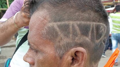 কলকাতা : একুশে জুলাইয়ের সমাবেশের ভিড়ে আলাদা করে নজর কাড়লেন বর্ধমানের শের আলি। বাজিমাত করলেন চুলের অভিনব কাটিং-এ। মাথায় একদিকে লেখা মমতা, অন্যদিকে অভিষেক। মাঝে ঘাসের ওপর জোড়াফুল। এইভাবে মাথা সাজিয়ে ধর্মতলামুখী হয়েছিলেন বর্ধমানের শের আলি।
