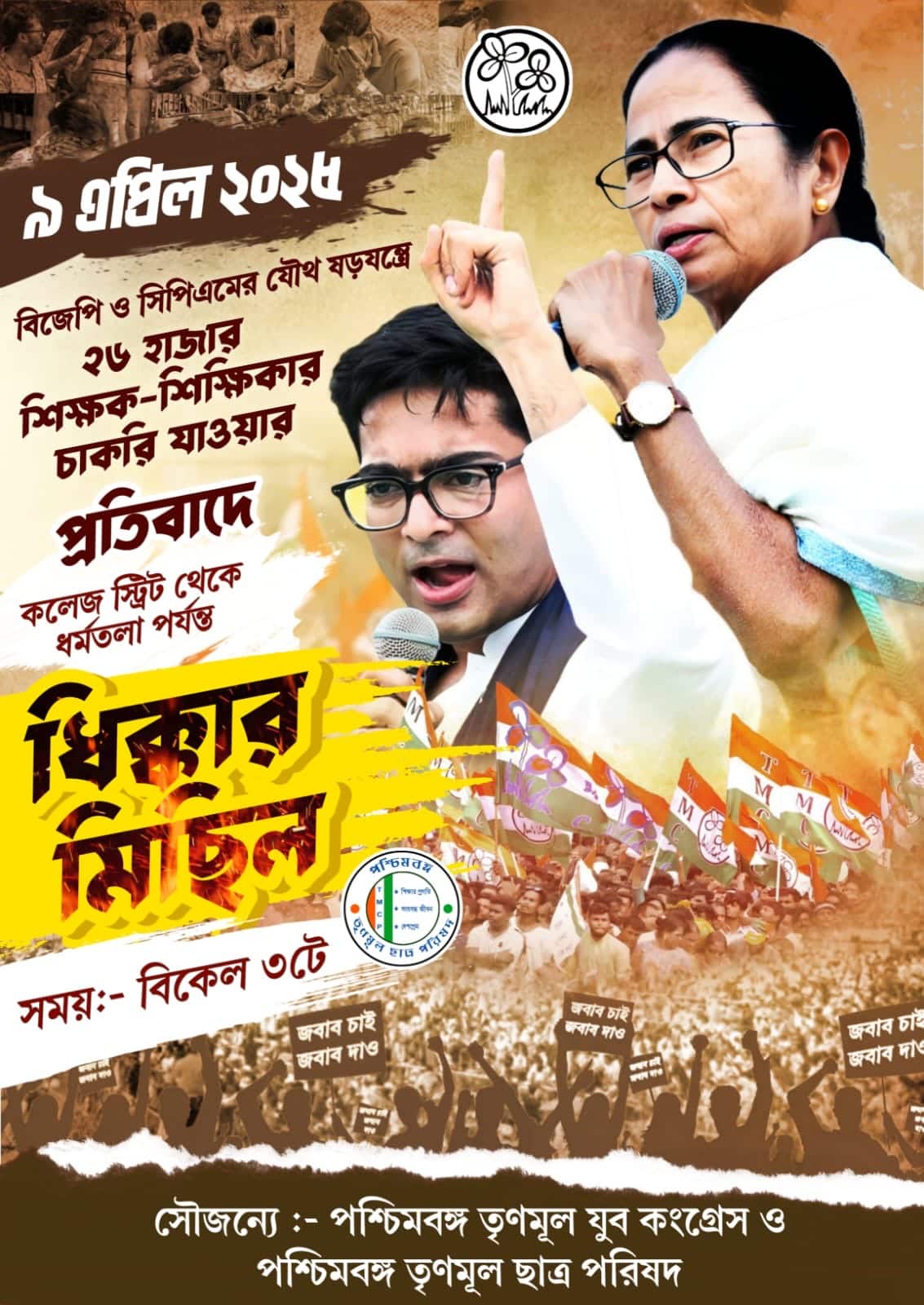 আজ, ৯ এপ্রিল বিকেল ৩টে থেকে কলেজ স্কোয়ার থেকে ধর্মতলা পর্যন্ত হবে এই মিছিল। এই ষড়যন্ত্রের বিরুদ্ধে প্রত্যেক জেলা, ব্লক/ওয়ার্ড ও টাউনে ছাত্র যুবদের প্রতিবাদ মিছিল সংঘটিত হবে ১১ এপ্রিল শুক্রবার। ছাত্র ও যুব সংগঠন এই মিছিল করবে। আজ ৯ এপ্রিল বিকেল ৩টে থেকে কলেজ স্কোয়ার থেকে ধর্মতলা, চাকরি খাওয়ার প্রতিবাদে মিছিল ডাকা হল। ছাত্র ও যুব সংগঠন এই মিছিল করবে। বিরোধীরা যদিও প্রত্যাশিত ভাবে চাকরিহারাদের দুর্দশার জন্য মুখ্যমন্ত্রী মমতা, তাঁর সরকার এবং তাঁর দল তৃণমূলকেই দায়ী করেছেন।