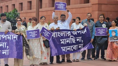 শুক্রবার ফের সংসদ চত্বরে বিক্ষোভে তৃণমূল সাংসদরা, ‘বাংলা’ ভাষা ও বাঙালি অস্তিত্ব রক্ষার দাবিতে। হাতে বাংলা পোস্টার, গলায় বিশেষ ব্যাজ—এ ভাবেই বিক্ষোভে সামিল হন অভিষেক বন্দ্যোপাধ্যায় সহ তৃণমূলের অন্যান্য সাংসদরা। ইন্ডিয়া জোটের তরফেও এসআইআর (Special Investigation Request) ইস্যুতে সরব প্রতিবাদ।