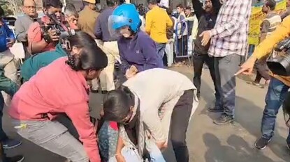 বিক্ষোভকারী চাকরিপ্রার্থীদের সামাল দিতে রীতিমতো হিমশিম খেতে হয়েছে পুলিশকে। একজন মহিলা চাকরিপ্রার্থী অসুস্থ হয়ে পড়েন। তাকে তুলতে গিয়ে তাকে শুশ্রূষা করছেন মহিলা পুলিশ অফিসাররা।
