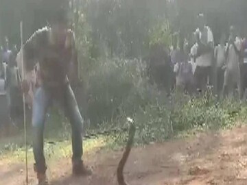 একটি ভিডিওতে দেখা গিয়েছে, একজন সর্পবিশারদ ধরে আছেন সাপটিকে৷ সাপ ও বিশারদের এই খেলা দেখতে ভিড় জমিয়েছেন অনেকে৷ তাঁদের মধ্যে কেউ কেউ মোবাইলে রেকর্ড করে রেখেছেন পুরো ঘটনাটি৷