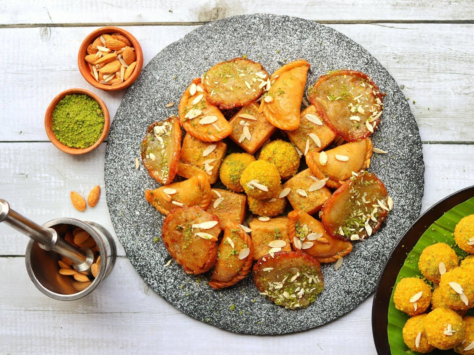 গুজিয়া, মালপোয়া, রাবড়ি, মোতিচূড় লাড্ডু