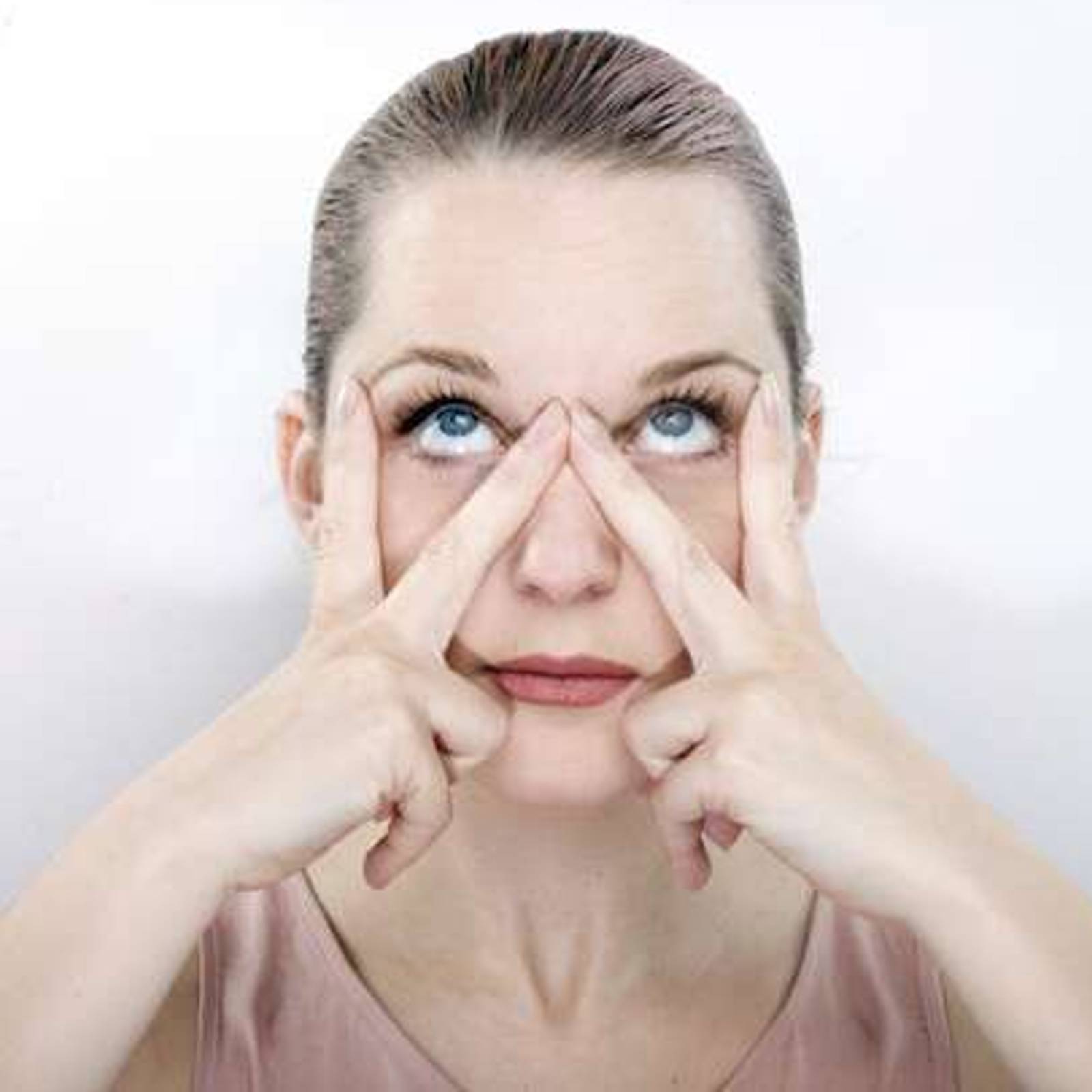 দুই হাতের মধ্যমা রাখুন কপালের মাঝে৷ এ বার দুই আঙল দিয়ে ‘ভি’-এর মতো আকার তৈরি করুন৷ এ বার উপরের দিকে তাকান৷ এই ভঙ্গি রিপিট করুন ৬ বার ৷ এ বার প্রতি হাতের তর্জনী রাখুন চোখের নীচে, চিকবোন বা হনুর হাড়ের উপরে ৷ দুটি ঠোঁট ঢুকিয়ে নিন ভিতরে ৷ স্বাভাবিক অবস্থায় ফেরার আগে উপরের দিকে তাকিয়ে উপরের চোখের পাতা কয়েক বার ফেলে চোখ খোলা বন্ধ করুন ৫ থেকে ৬ বার ৷
