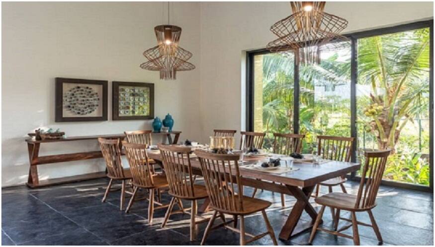 পরিবারের সদস্যদের মধ্যে প্রাণ খুলে কথা বলার মতো ঘরের আর একটি জায়গা হল ডাইনিং এরিয়া। এই কারণের জন্য ঘরটিতে ডিজাইনাররা একটি লম্বা টেবিল যোগ করেছেন, তা পরিবারের সকলের আড্ডা মারার মেজাজের সাথে মানানসই। তার সাথে আকর্ষণীয় দেখতে চেয়ারগুলি দারুণ কনট্রাস্ট যোগ করেছে এবং বিনা পরিশ্রমে ঘরটিকে অন্য মাত্রা দিতে সাহায্য করেছে।