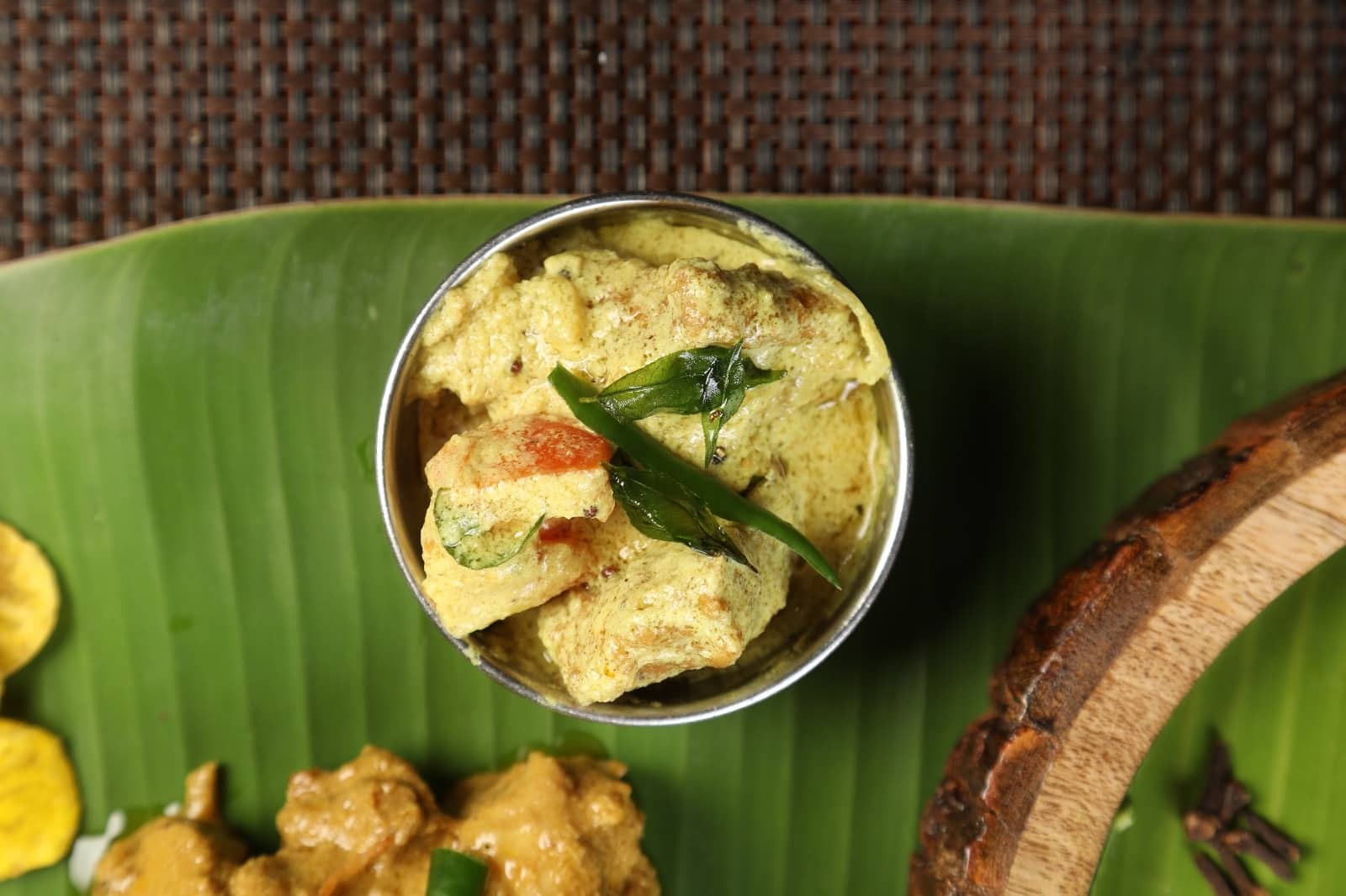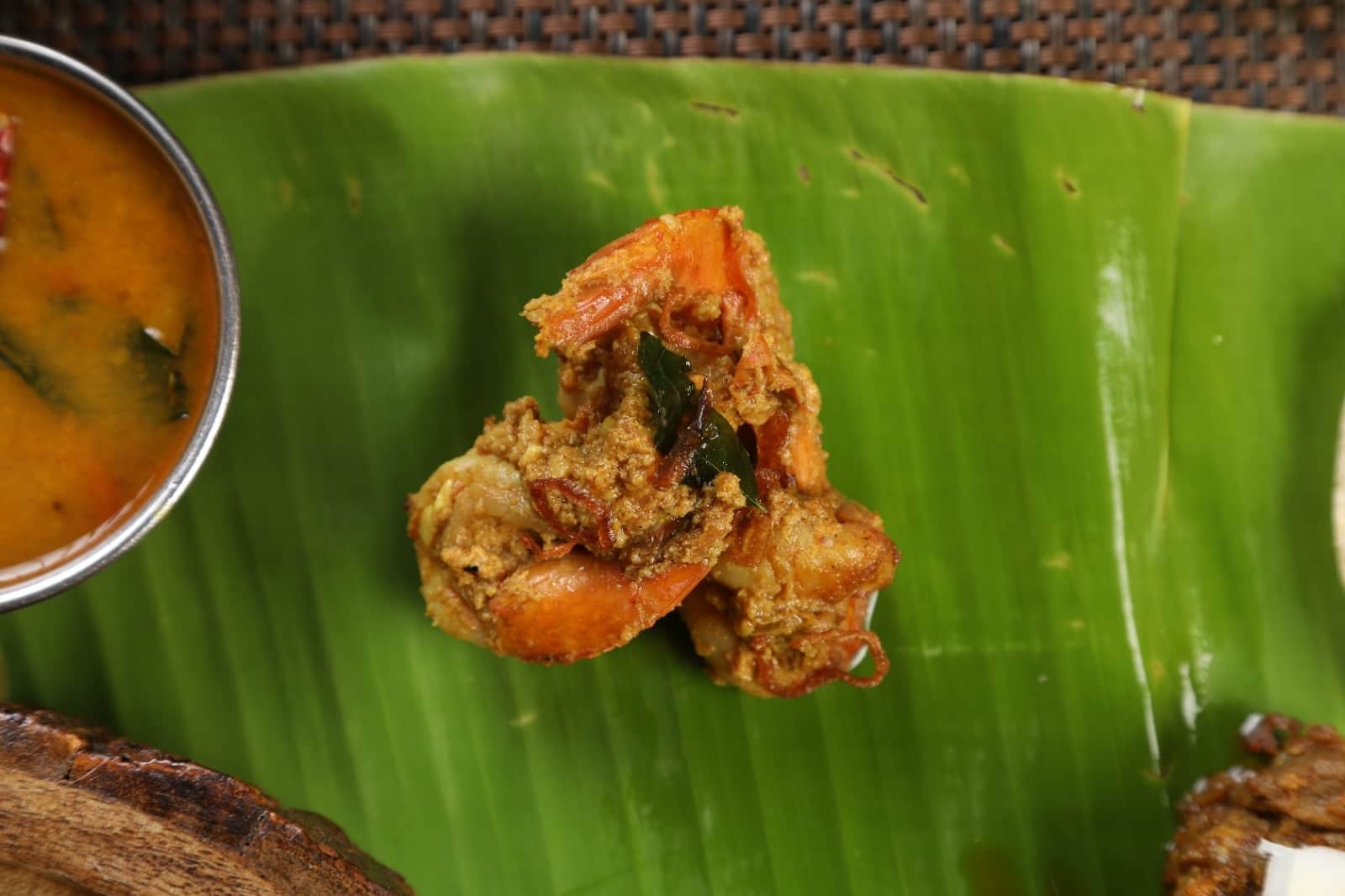 সবার প্রথমে সেরে নেওয়া যাক নিরামিষ আয়োজনের কথা। দক্ষিণ ভারতীয় নিরামিষ বললে মাথায় যদি ইডলি-ধোসার কথা আসে, তাহলে ঠকতে হবে। ট্যামারিন্ডের নিরামিষ ওনাম সাদ্য তালিকায় রয়েছে সুক্কু ভেলম (শুকনো আদা গুঁড়ো এবং গরম জলের সরবত), পাচা মোরু (আমের টুকরো, আদা এবং কাঁচা মরিচ আর তড়কা দেওয়া তরতাজা ঘোল), সাবু চিপস, কাঁচকলা চিপস, লেবুর আচার এবং ইঞ্জি কারি (তেঁতুল থেকে তৈরি একটি টক দক্ষিণ ভারতীয় চাটনি)। অতিথিরা লাল ভাত, ঘি, আপ্পম, পারিপ্পুর (দক্ষিণ ভারতীয় ধাঁচের মুগ ডাল) মতো বিভিন্ন ঐতিহ্যবাহী ব্যঞ্জন উপভোগ করবেন, রয়েছে ভেজ স্টু, আলু কাঁচকলা থোরান (টোস্ট করা নারকেল, আদা, জিরে এবং কাঁচা মরিচ দিয়ে রাঁধা আলু-কাঁচকলা), কালান (নারকেল, আদা, জিরে এবং লাল লঙ্কা বাটা দেওয়া মশলাদার ওল-চানা), ওলান (গ্রেট করা নারকেল, কাঁচা লঙ্কা, কোকোনাট মিল্ক পাউডার, আদা দিয়ে রাঁধা ঘন সুগন্ধি চালকুমড়ো, লোবিয়া, সবজির পদ), ড্রামস্টিকস থিয়াল (গ্রেট করা নারকেল, কালো মরিচ, জিরে, আদা এবং কোকোনাট মিল্ক পাউডারে সমৃদ্ধ সজনেডাঁটার তরকারি), এরিসেরি (গ্রেট করা নারকেল, জিরে, কালো মরিচ, আদা এবং কোকোনাট মিল্ক পাউডার দিয়ে রান্না করা আনারস, মিষ্টি এবং সুস্বাদু স্বাদের অভূতপূর্ব যুগলবন্দি) এবং ভিন্ডি পাচাড়ি (ঢেঁড়স এবং দই দিয়ে তৈরি একটি টক রায়তা)। মিষ্টিমুখে থাকবে পাপ্পাদম, আদা পারধামান এবং নারকেল পায়সমের মতো ঐতিহ্যবাহী ডেজার্ট।