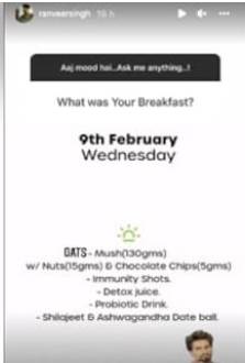 Ranveer Singh’s breakfast : ওটস থেকে অশ্বগন্ধা, কী কী থাকে রণবীর সিংয়ের প্রাতরাশে? তারকা জানিয়েছেন নিজেই