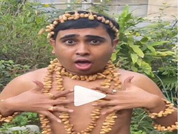 Sandy Saha viral video: 'কাঁচা বাদাম' থেকে 'কুসু কুসু' ! এবার বাদামের মালা পরে বাদাম-কাকু স্যান্ডি সাহা ! ভিডিওতে হাসির ঝড়