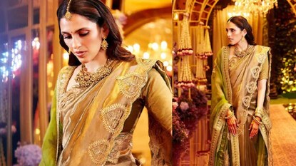 Anant Ambani And Radhika Merchant Wedding: মেহেন্দির রাতে শ্লোকা মেহেতা পরেছিলেন তাঁর দিদিমার সোনালি রঙের টিসু সিল্ক৷ শাড়ির জমি জুড়ে ছিল অসাধারণ জরির কাজ ও পান পাতার মোটিভ৷ ডিজাইন করেছিলেন তাঁরই বোন দিয়া মেহতা জাটিয়া৷