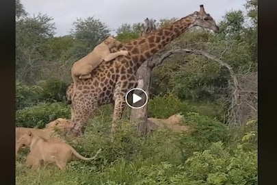 এ যেন এক দুর্ধর্ষ অভিযান, হাড়হিম করা ঘটনা ৷ যা প্রকাশ্যে আসতেই চক্ষু হয়েছে চড়ক গাছ গবীর ভাবে কাতরাচ্ছে একটি জিরাফ ৷ তাকে ঘিরে উল্লাস করছে বেশ কয়েকটি সিংহী ৷ বিষাক্ত থাবা ও তীক্ষ্ণ দাঁতের কামড় বসিয়ে দিয়েছে পিঠের উপরে ৷ এখানেই শেষ নয় ৷ দু'পা ধরেই ঝুলছে সিংহীরা ৷