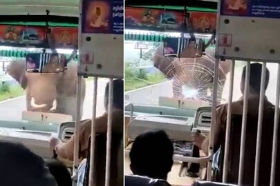 Viral Video of a Tusker shattering windshield : হাতির দাঁতের ধাক্কায় চূর্ণ কাচ! মৃত্যুর মুখোমুখি হয়েও যাত্রীদের রক্ষা বাসচালকের, দেখুন ভাইরাল ভিডিও