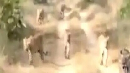 পিছনের জাঙ্গলসাফারির জিপটি দেখে একটি বাঘ চলে গেল দল ছেড়ে৷ ঢুকে পড়ল বনের মধ্যে৷ বাকি পাঁচ জন অবশ্য ওই পথেই এগিয়ে চলল৷ দু’টি জিপ এ বার ধীরে ধীরে এগোতে লাগল৷ মাঝে বাঘের দলের গতিও মন্থর৷ তারাও যেন জরিপ করছে অভয়ারণ্যে আসা দু’ পেয়েদের! দলের প্রধান বাঘটি তো বেশ এগিয়ে এল জিপের দিকে৷ তার পর থেমে গেল৷ শার্দূলবাহিনীকে ওই অবস্থায় রেখেই জিপ এগোতে থাকল৷ ভিডিয়ো শেষ এখানেই৷
