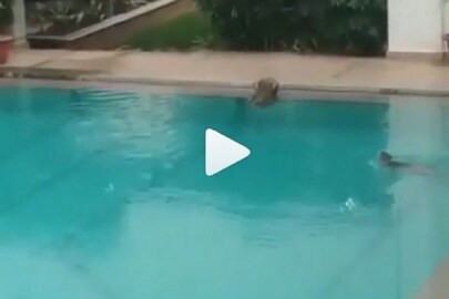 মানুষ গৃহবন্দি ! সুইমিংপুলে সাঁতারে মত্ত বাঁদর ! তুমুল ভাইরাল ভিডিও