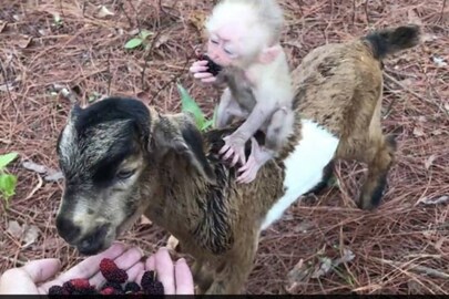 ছাগলের পিঠে সওয়ার এক বাঁদর (Viral video of goat and monkey) ৷ তাকে নিয়েই ছুটে চলে এল ছাগলছানা ৷ তার পর এক পশুপ্রেমীর হাত থেকে দু’জনেই ভালবেসে খেল বেরিফল ৷ এই ভিডিও এখন ভাইরাল ৷ মন জয় করে নিয়েছে নেটিজেনদের ৷