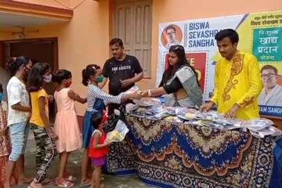 North 24 Parganas| ৫০ জন অসহায় বাচ্চাদের শিক্ষা সামগ্রী প্রদানের পাশাপাশি তাদের হাতে শুকনো খাবার তুলে দিলেন।