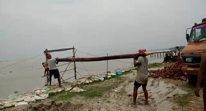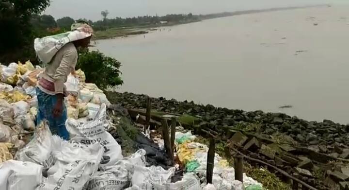 শালবল্গা, মাটির বস্তা ইটের কুচি দিয়ে প্রশাসনিক উদ্যোগে, তৈরি হচ্ছে আপৎকালীন বাঁধ মেরামতি। দীর্ঘ এক কিলোমিটারের বেশি নদী বাঁধের কাজ শুরু হয়েছে।