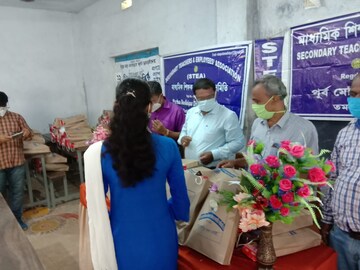 নন্দকুমার : রবিবার সকালে মাধ্যমিক শিক্ষক ও শিক্ষাকর্মী সমিতি (এস টি ই এ) নন্দকুমার ও চন্ডীপুর জোনের যৌথ উদ্যোগে ইয়াস ঝড় ও প্রবল জলোচ্ছাস দুর্গত হলদি নদীর দুই পাড়ের নরঘাট এলাকার ৮২ জন ছাত্রছাত্রী ও তাদের পরিবারের মধ্যে শিক্ষা ও খাদ্য সামগ্রী বিতরণ করা হয় বাগডোবা জলপাই হাইস্কুলে।ছাত্র - ছাত্রীদের হাতে খাতা, কলম, মাস্ক, সাবান, ডাল, সোয়াবিন, বিস্কুট, ডিম ও কেক প্রভৃতি খাদ্য ও শিক্ষা সামগ্রী তুলে দেওয়া হয়।
