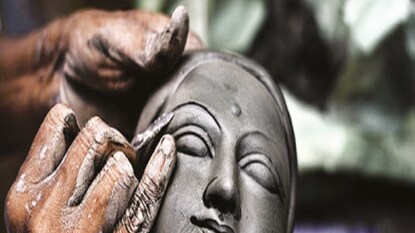 দুর্গাপূজা এগিয়ে আসতেই মূর্তি বানানোর তোড়জোড় শুরু করে দিয়েছেন ঘূর্ণির মৃৎশিল্পীরা। (Nadia News)