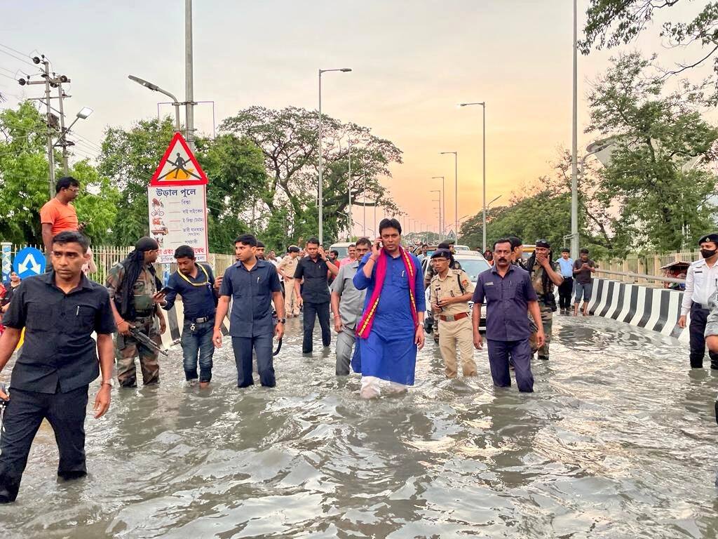 ৪. ওভার ফ্লো থেকে রক্ষা পেতে হাওড়া নদী ড্রেজিং করা ৷ রাস্তায় জমা জলে নামতে দেখা গিয়েছে সদ্য প্রাক্তন মুখ্যমন্ত্রী বিপ্লব দেবকেও ৷ এদিন জমা জলে নিরাপত্তা রক্ষী নিয়ে তার ছবি দেখে কটাক্ষ করছেন বিরোধীরা৷ যদিও বিপ্লব বাবু জানিয়েছেন, ‘‘প্রবল বৃষ্টির ফলে আগরতলা শহরে জল জমে যায়। এই পরিস্থিতিতে জমা জল দ্রুত নিষ্কাশন করতে প্রয়োজনীয় পদক্ষেপ নিতে দায়িত্বপ্রাপ্ত কর্তৃপক্ষের সঙ্গে কথা বলি। আশা করি অতি শীঘ্রই আগরতলাবাসী এই দুর্ভোগ থেকে মুক্তি পাবেন।’’
